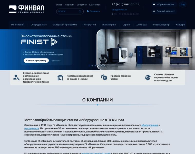 Группа компаний «Финвал» предлагает металлообрабатывающее оборудование и станки: токарные, фрезерные, шлифовальные станки по металлу по выгодным ценам в Москве и Московской области. Инжиниринговые услуги, профессиональный инструмент, обучение кадров, сервисное обслуживание.