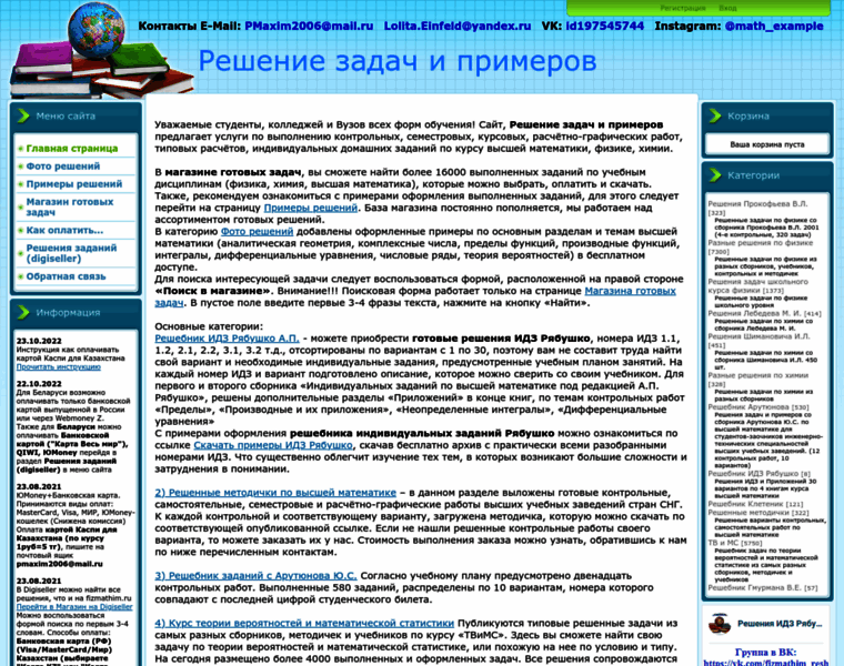 Решение задач и примеров по математике, физике на заказ, имеются готовые решебники ИДЗ Рябушко, по физике сборника Прокофьева, химии Шимановича
