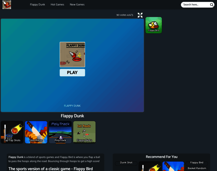 Flappy Dunk is a blend of sports games and Flappy Bird is where you flap a ball to pass the hoops along the road. Bouncing through hoops to get a high score!