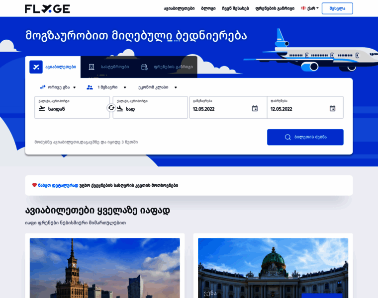 ავიაბილეთები. ონლაინ დაჯავშნა და შეძენა იაფად. | Fly.ge