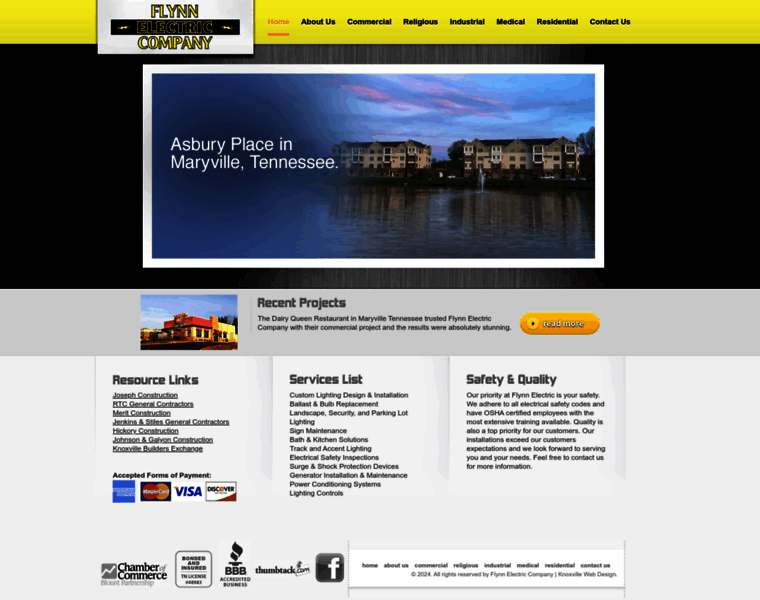 Flynn Electric Company offers electrician services for commercial, industrial and residential projects throughout the greater Knoxville and Maryville Tennessee area.