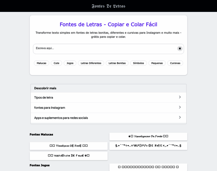 Fontes de letras em mais de 200 estilos bonitas para Instagram, TikTok e design. Crie visuais cursivos ou diferentes. Digite, visualize, copie e cole.