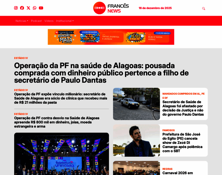 Portal Francês News: últimas notícias do Nordeste, Brasil, Alagoas e região. Política, economia, esporte, cultura e acontecimentos em tempo real.