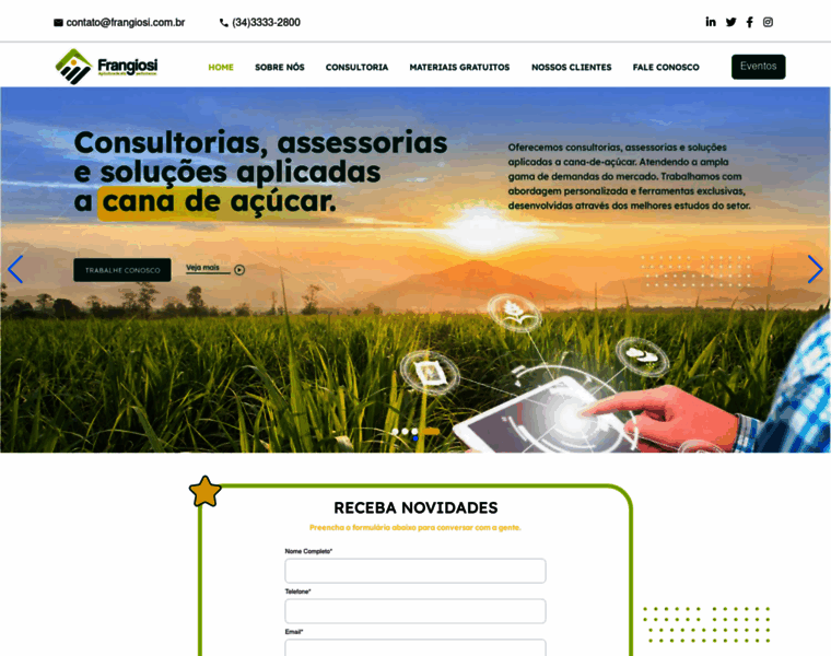 Empresa Agrícola Frangiosi, há mais de 40 anos produzindo, soja e cana-de-açúcar, no Município de Campo Florido - MG, bem como, destaque em testes e experimentos em cana-de-açúcar, obtendo alto índice de produtividade.