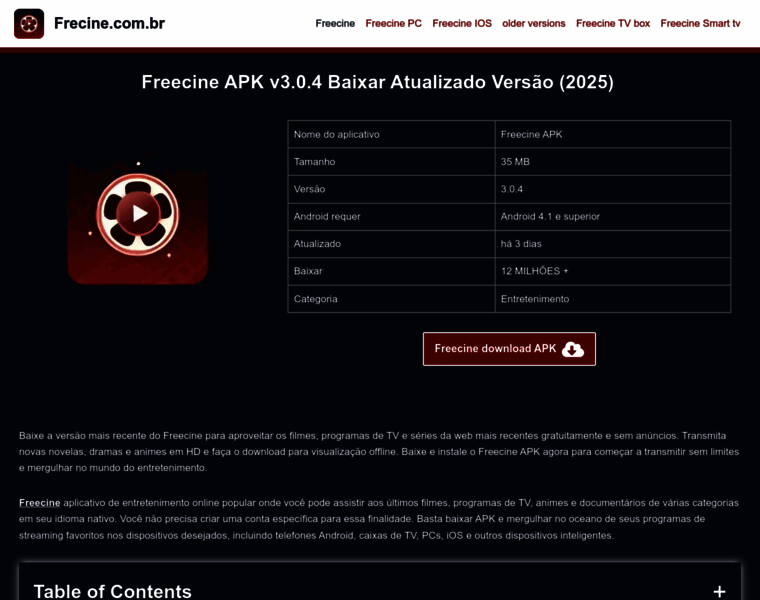 Freecine APK Baixar Atualizado Versão 3.0.4 Online 2025