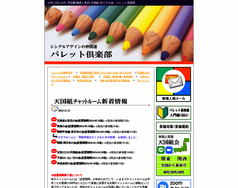 40代 50代 60代 | 伴侶配偶者と死別 天国組 没イチの会 | パレット倶楽部