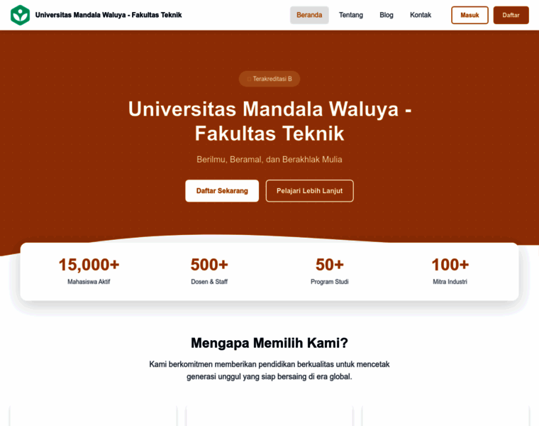 Universitas Mandala Waluya - Fakultas Teknik - Berilmu, Beramal, dan Berakhlak Mulia. Terakreditasi B di Kendari, Sulawesi Tenggara.