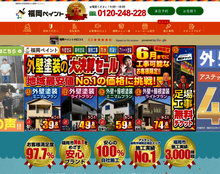 福岡市の外壁塗装・屋根工事は、口コミ評判が高い外壁塗装・屋根工事専門店 福岡ペイントへ。地域密着対応中!高品質塗装をお求め安い価格でご提供!【電話:0120-248-228!無料見積、外壁劣化・雨漏診断、実施中】