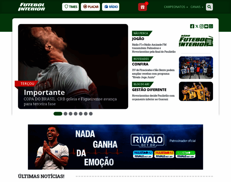 Futebol Interior Futebol Paulista, Estaduais, Brasileirão, Libertadores, Sul-Americana e Internacional: Tabelas, Placar, Resultados, Classificação e Notícias
