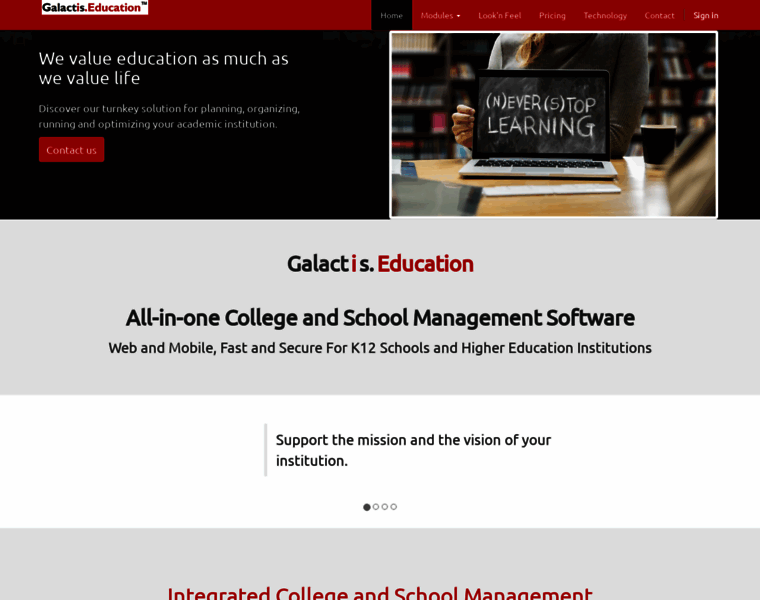 Galactis.Education is an all-in-one college and school management software and system: academics, students, campus, multi-schools, collaboration, HR, accounting