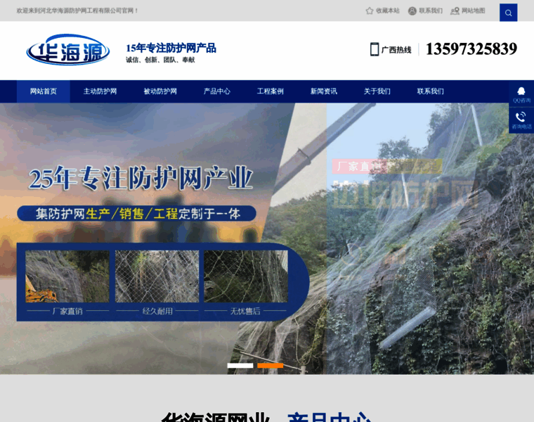 河北华海源防护网工程有限公司:生产边坡柔性防护网,边坡防护网,主动防护网,并配备施工队伍,承接***各地的安装工程,产品以高强度钢丝绳网(菱形钢丝绳网、环形网、高强度钢丝格栅)作为主要构成部分,以覆盖、紧固来防治坡面岩石崩塌、滚落、爆破飞石等危害。