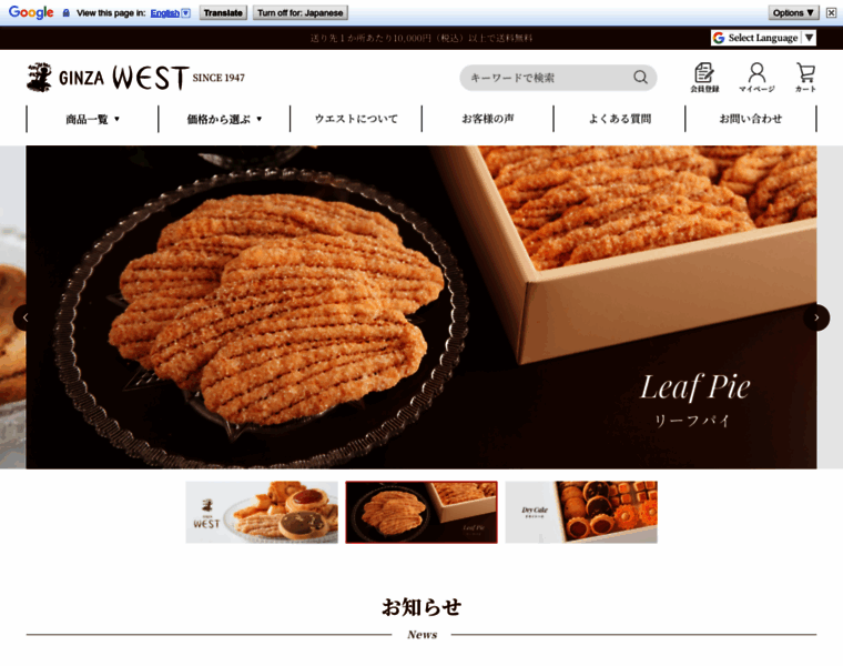 銀座ウエスト公式オンラインショップ『人工の香料、色素等をできるかぎり使用せず、材料本来の風味を生かすべく、ひとつひとつ職人の手作業による成型』との姿勢で1947年の創業以来取り組んでいます。