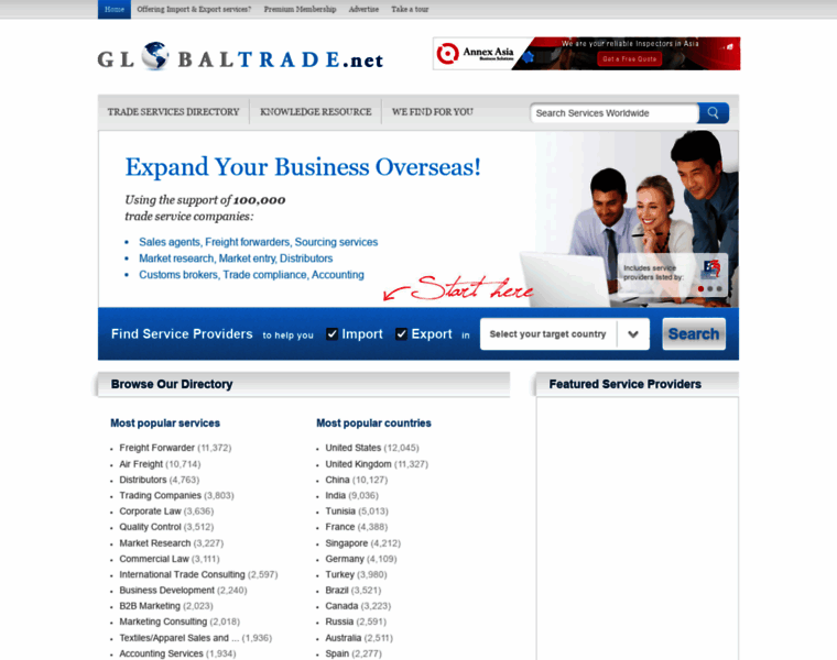 Helping you connect with International Trade Service Providers worldwide. Browse 100,000+ Sales Agents, Distributers, Lawyers, Freight Forwarders and more.