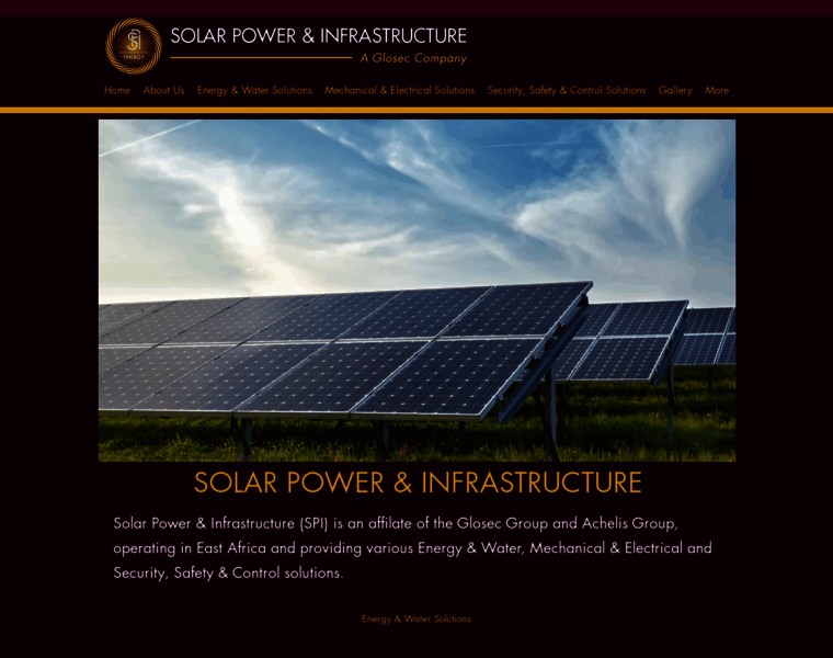 Solar Power & Infrastructures (SPI) is an affiliate of the Glosec Group and Achelis Group,operating in East Africa to provide solutions for Residential and commercial Premises focussing on Energy & Water ,Mechanical, Security,Safety & control solutions.
