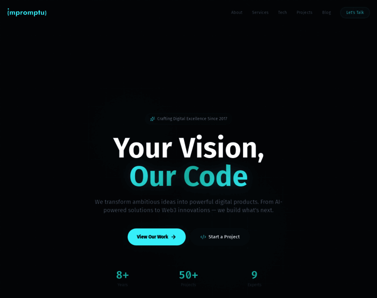 Impromptu is a leading software development company specializing in web app development, mobile apps (iOS & Android), AI integration, Web3/blockchain solutions, and big data. Transform your vision into reality with our expert team.