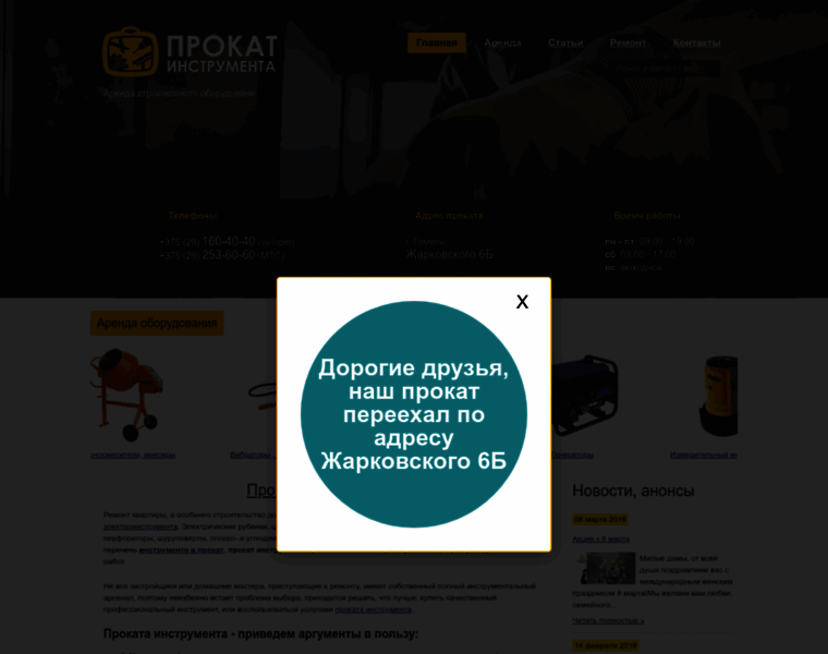 Мы занимаемся прокатом строительного оборудования в Гомеле. Для того чтобы взять в аренду строительное оборудование вам не потребуется много времени и больших денежных вложений. Все инструменты по низким ценам в прокат на сутки и более.