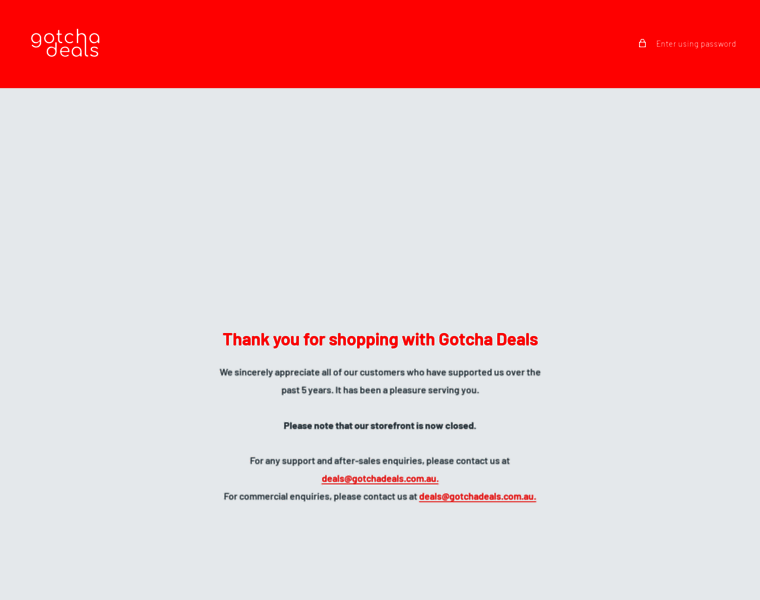 The registrar of gotchadeals.com.au is AU-NIC. Owner email is not available.