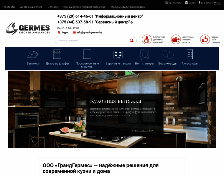 Официальный сайт кухонные вытяжки Germes и Grand оптом по РБ