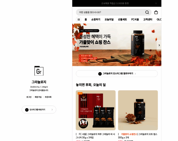 그라놀로지(GRANOLOGY)는 국내 최초 그래놀라 및 슈퍼푸드 전문 브랜드이자, 독창적인 레시피와 엄선된 재료를 통해 끊임없이 맛과 영양을 연구하는 슈퍼곡물/슈퍼푸드 전문 연구소입니다. 건강한 문화와 가치를 만듭니다.