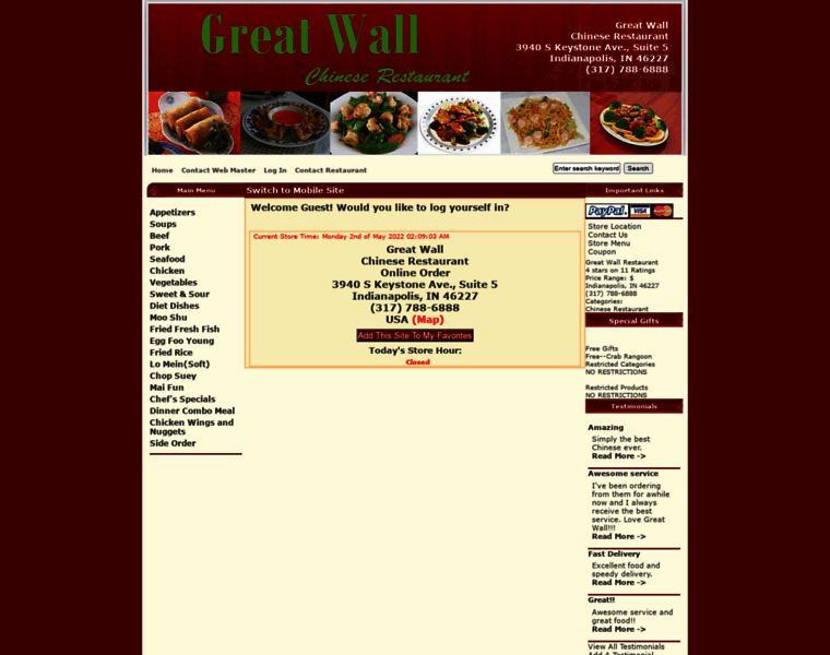 Great Wall Chinese Restaurant Indianapolis, IN 46227 Online Delivery! , Fast Food Delivery.