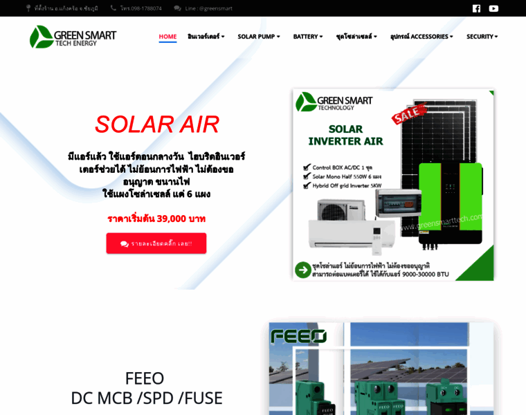กรีนสมาร์ทเทค – จำหน่ายติดตั้ง โซล่าเซลล์ อินเวอร์เตอร์ แบตเตอรี่ และอุปกรณ์ไฟฟ้า