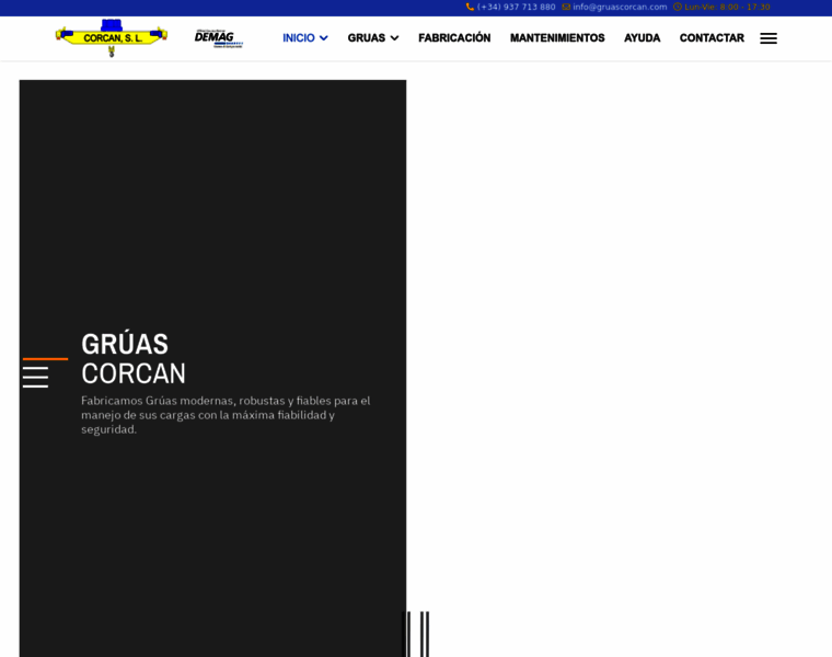 Grúas Corcan fabrica todo tipo de grúas y polipastos (Grúas Pescantes, Grúas Pórtico, Puente Grúa, Puente Grúa Birraíl, Polipasto); así como componentes y estructuras, Reparamos todo tipo de grúas y prestamos servicio técnico de mantenimiento a la industria.
