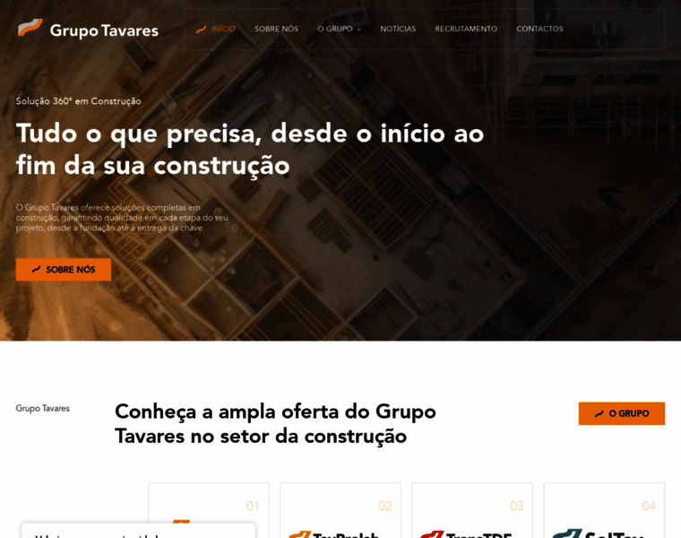 Grupo Tavares Conheça a ampla oferta do Grupo Tavares no setor da construção O Grupo 01 Produção e distribuição de betão. Ver mais 02 Serviços de laboratório em obra. Ver mais 03 Coordenação de serviços de logística. Ver mais 04 Pavimentos industriais e demolição. Ver mais 05