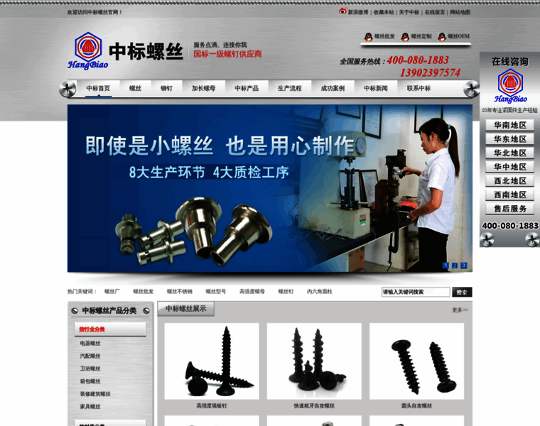 广东中标金属制品有限公司厂家直销,螺丝定制批发,联系电话400-080-1883,中标18年专注螺丝、螺母等紧固件生产制造!