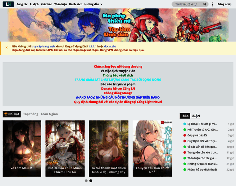 Đọc Light Novel online, bình luận Light Novel. Thư viện Light Novel Tiếng Việt lớn nhất, chất lượng cao, cập nhật liên tục, nhiều chức năng hỗ trợ việc đọc truyện dễ dàng.