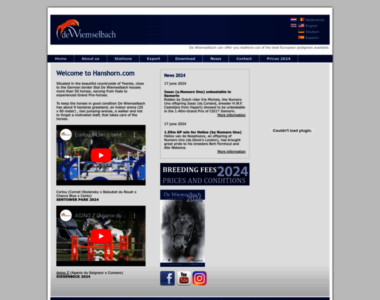 Welcome to Hanshorn.com Situated in the beautiful countryside of Twente, close to the German border Stal De Wiemselbach houses more than 50 horses, varying from foals to experienced Grand Prix-horses. To keep the horses in good condition De Wiemselbach