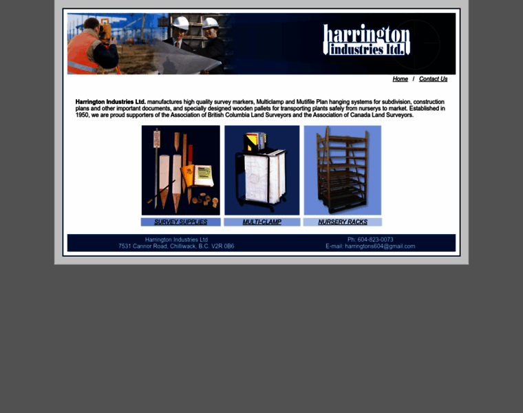 Harrington Industries Ltd. manufactures high quality survey markers, Multiclamp and Mutifile Plan hanging systems for subdivision, construction plans and other important documents, and specially desig...