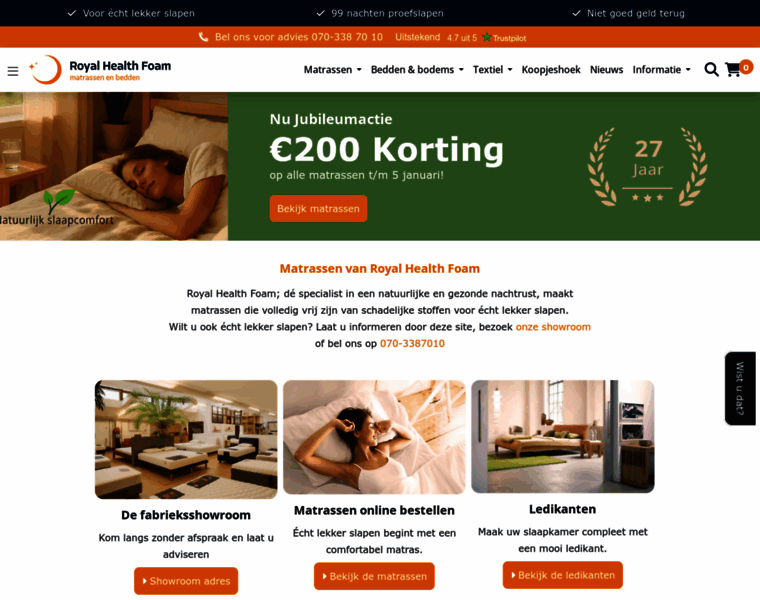 Kwaliteit matrassen van Royal Health Foam. 99 dagen gratis proefslapen. Best geteste matras. Traagschuim en koudschuim, medische kwaliteit