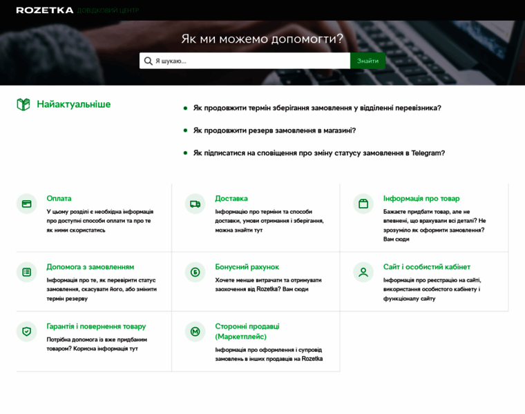 Довідковий центр інтернет-магазину ROZETKA ✔️ Інформація про оплату, доставку, гарантію та багато іншого