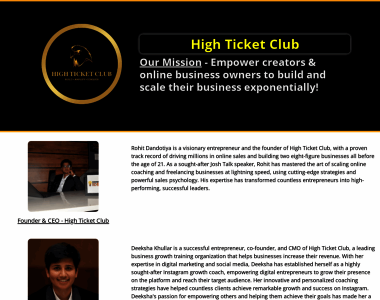 High Ticket Club is officially owned by Rohit Sharma. Rohit Sharma is a renowned High Ticket Sales Expert. The brand is centered to provide quality education to business owners and help them in growing it with the help of our services and courses.