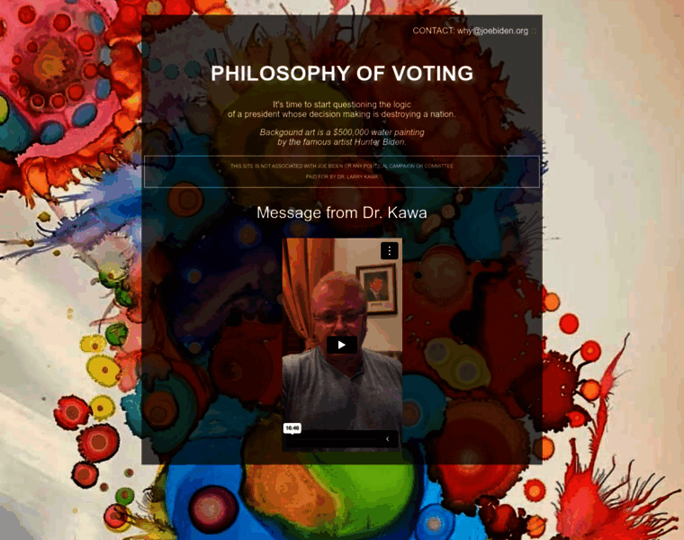 Dr. Larry Kawa's call to action to the American people. Help us reign in government over reach and corruption. Your voice counts. Just say NO to Joe!