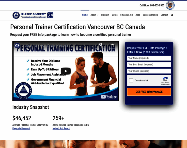 Become a certified personal trainer (BCRPA / ACE) with Hilltop Academy - PCTIA accredited. Call now 604-553-0505 for Fitness Instructor Training program.