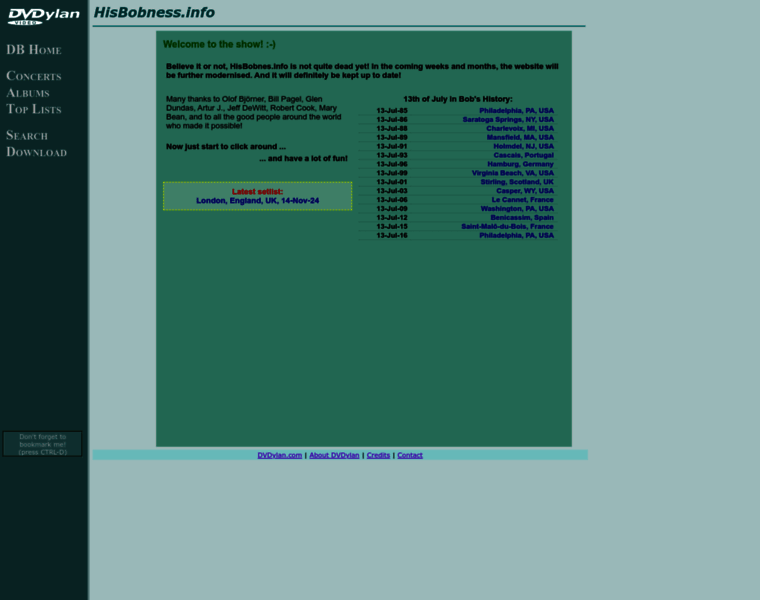 Bob Dylan Live Recording Database offers lots of facts and statistics for every Dylan fan. Come in and find out! :-)