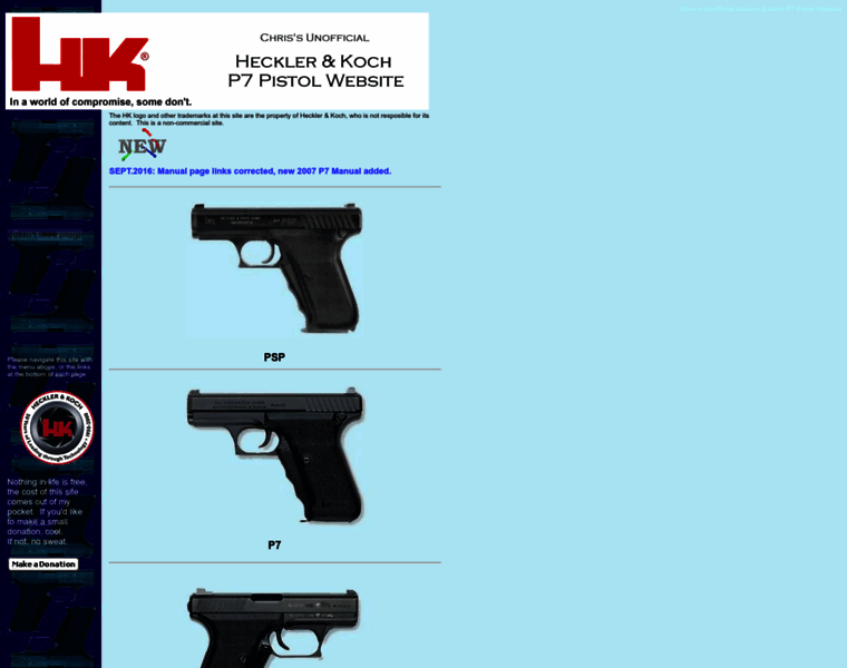 An Unofficial Web Site for the P7 series of semiauto pistols made by Heckler & Koch of Germany, by Chris
