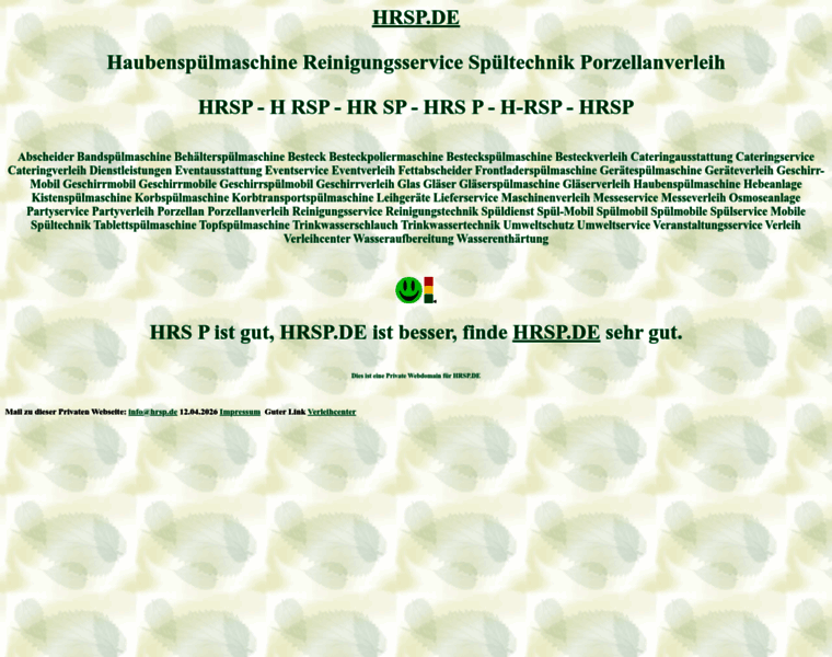 hrsp, Besteckverleih, Cateringverleih, Eventverleih, Fettabscheider, Geräteverleih, Geschirr-Mobil, Geschirrmobil, Geschirrmobile, Geschirrverleih, Gläserverleih, Leihgeräte, Kistenspülmaschine, Maschinenverleih, Porzellanverleih, Reinigungsservice, Reinigungstechnik, Spüldienst, Spül-Mobil, Spülmobil, Spülmobile, Spülservice, Mobile Spültechnik, Trinkwassertechnik, Umweltschutz, Umweltservice, Veranstaltungsservice, Verleih, Wasseraufbereitung, ...