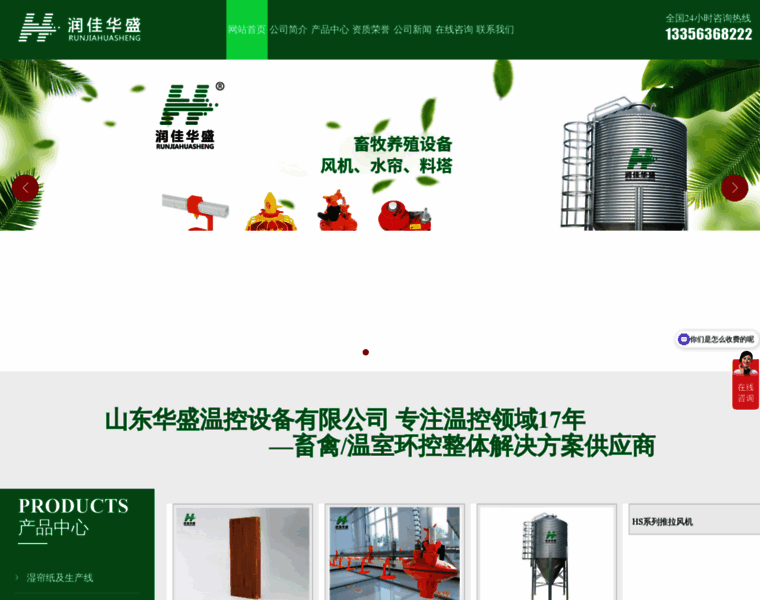 山东华盛温控设备有限公司坚持以质量求生存,以革新求发展的经营理念,同有关大专院校、科研院所有合作关系,先后开发出大型畜牧风机、温室用风机、工业厂房用风机、环流风机、屋顶自动通风机、核心材料湿帘纸等通风降温系统;燃油、燃煤、水暖热风机;温度控制装置等相关产品。