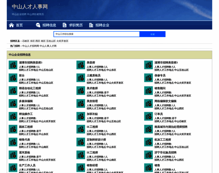 中山人才网中山人才招聘网专业提供中山人才服务,中山企业招聘服务。中山人才人事网提供企业职位发布,简历搜索等专业人才招聘服务,为求职者提供最新中山企业招聘信息,中山招聘网打造网络中山人才市场。