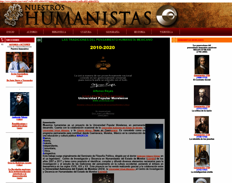 Nuestros humanistas es un proyecto de la Universidad Virtual Alfonsina y el CIDHEM, en permanente desarrollo. Concebido como un programa para contribuir en la construcción mexicana de una educación pública MAGICCA: Masiva, Abierta, Gratuita, Independiente, Comunitaria, Crítica, Autogestiva.