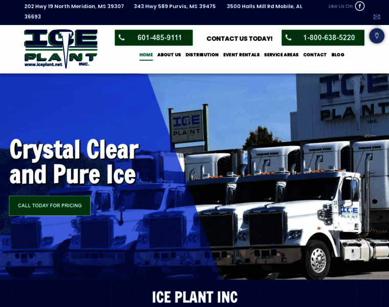 Wholesale Bagged Packaged Ice Delivery Supplier Jackson, Brandon, Canton, Starkville, Columbus MS - Ice Plant Inc.
