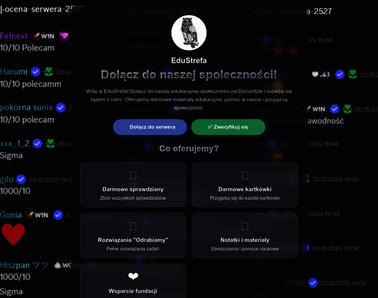 EduStrefa - Dołącz do naszej edukacyjnej społeczności na Discordzie. Darmowe materiały edukacyjne, pomoc w nauce i przyjazna społeczność.