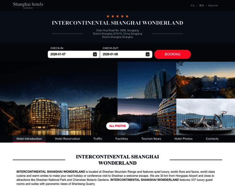 INTERCONTINENTAL SHANGHAI WONDERLANDofficial Website, Best price guarantee,book now!INTERCONTINENTAL SHANGHAI WONDERLAND is located at Sheshan Mountain Range and features quiet luxury, exotic flora and fauna, world class cuisine and warm smiles to make your next holiday or conference visit to Sheshan a welcome escape. We are 30 km from Hongqiao Airport and close to attractions like Sheshan National Park and Chenshan Botanic Gardens. INTERCONTINEN...