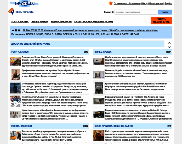 Доска объявлений в Израиле. Подать объявления в Израиле бесплатно на русском