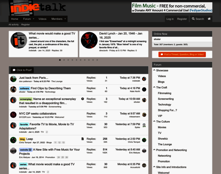 A friendly community of filmmakers and screenwriters eager to help you and your film. Beginners and pros welcome. Est. 2003.
