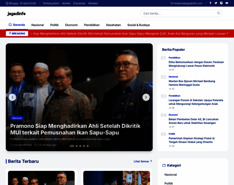 Jagadinfo.com adalah Portal informasi digital yang menyajikan berita Nasional, Politik, Ekonomi, Pendidikan, Kesehatan, dan Sosial & Budaya secara cepat, akurat, dan mudah dipahami. Kami hadir untuk membantu masyarakat mendapatkan gambaran utuh tentang berbagai peristiwa yang terjadi di Indonesia.