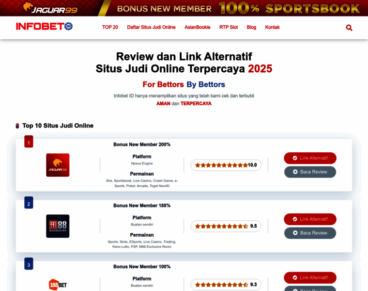 INFOBET memberikan Review dan Link Alternatif Situs Judi Online Terpercaya 2026 yang tidak terkena blokir atau internet positif.