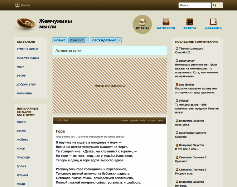 Самые популярные цитаты, высказывания, афоризмы, стихи за сутки, которые оценили другие пользователи. Заходите и читайте, чтобы не пропустить лучшие жемчужины мысли